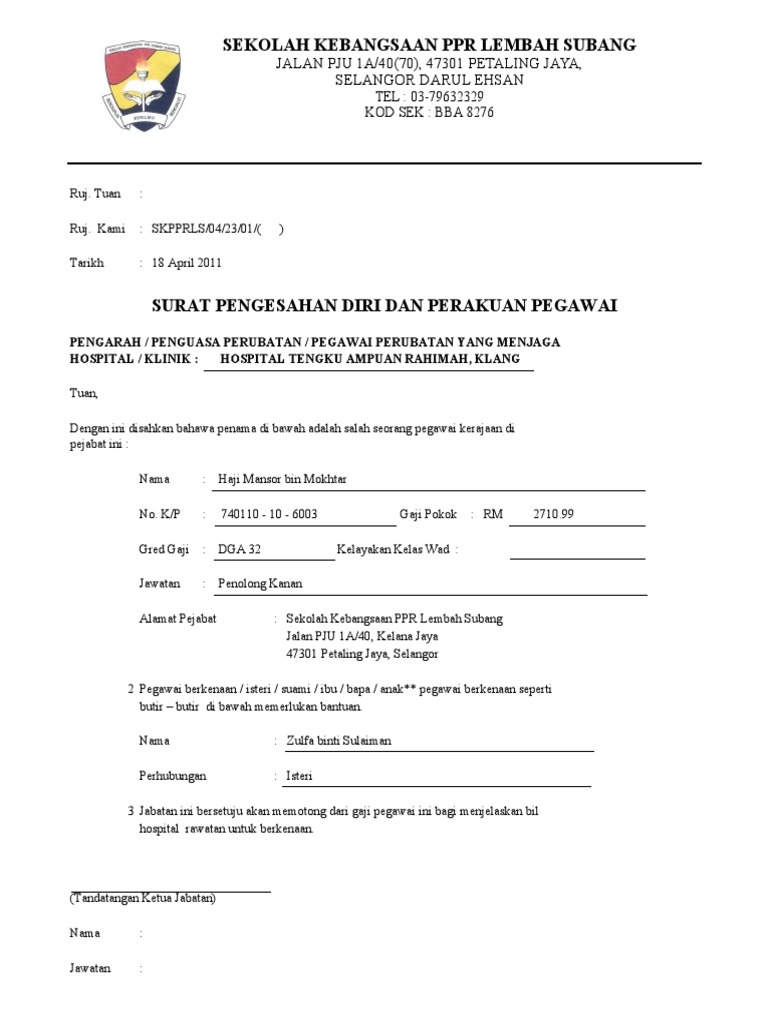Contoh Surat Rasmi Hospital Kerajaan Surat Rasmi C
