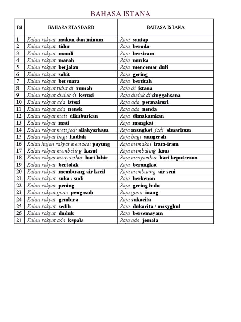 Contoh Bahasa Istana Senarai Maksud Ayat Terbaik Pt3