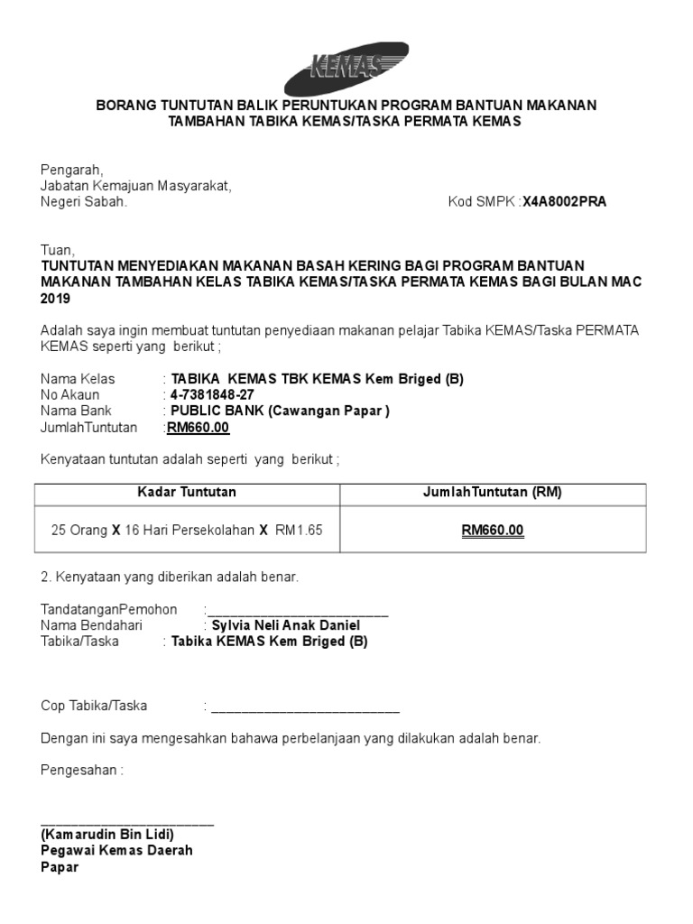 Contoh Surat Pengesahan Pelajar Tabika Kemas
