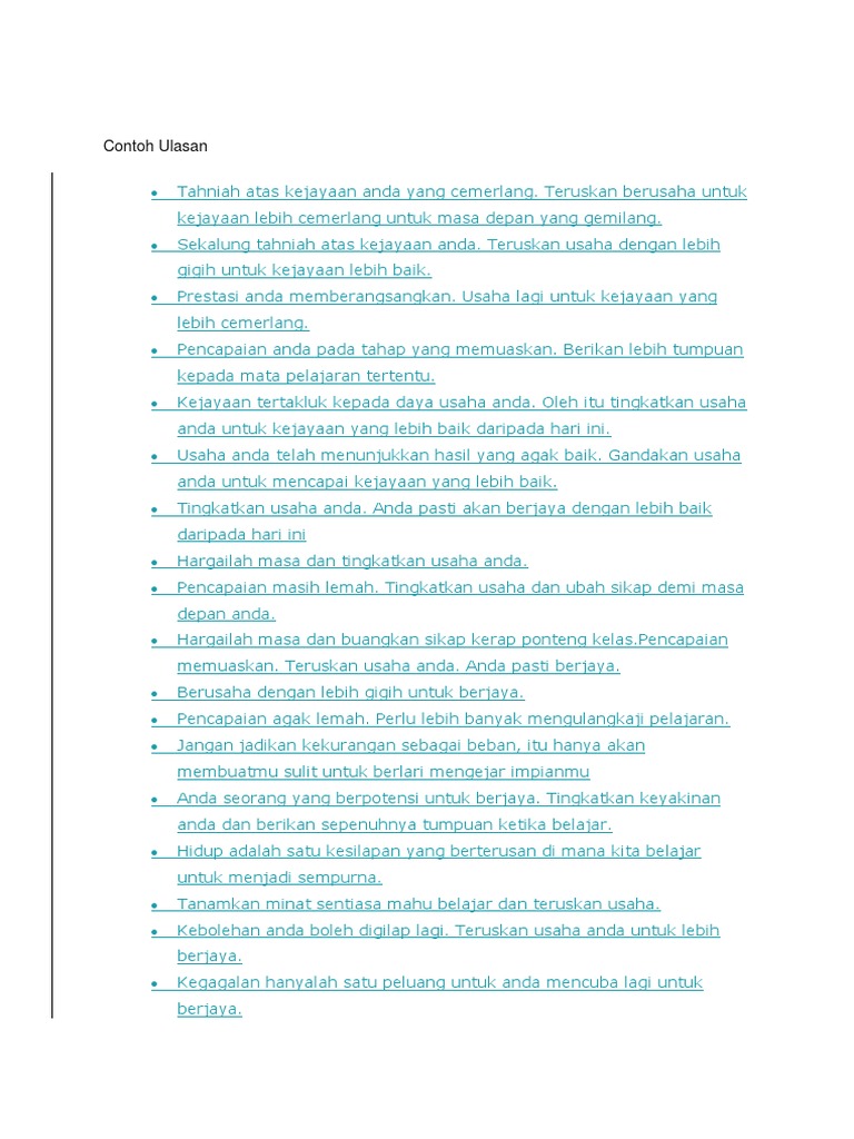 Contoh Ulasan Buku Rekod Murid