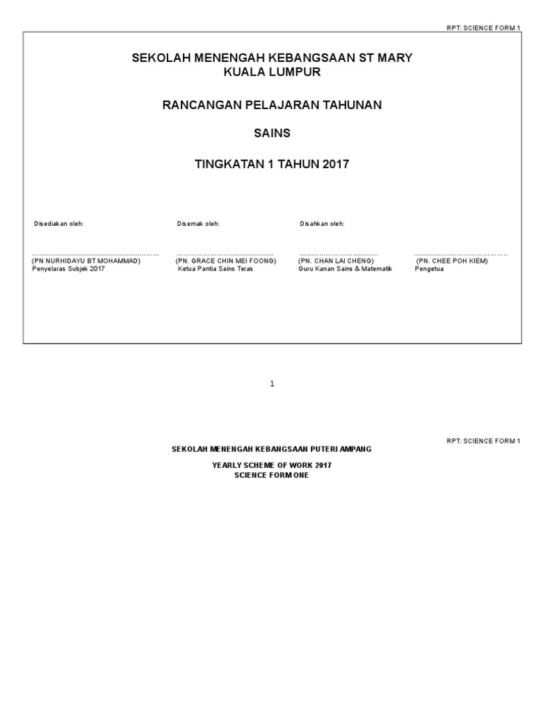 Form 1 Science Syllabus Malaysia 2017