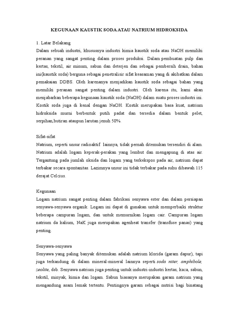 Kegunaan Kaustik Soda Atau Natrium Hidroksida