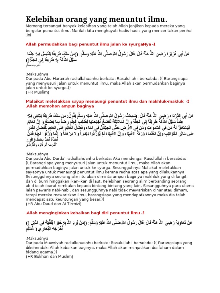 40 Hadith Kelebihan Ilmu Dan Ulama Tgsaf Hj Syarib S Travel Log