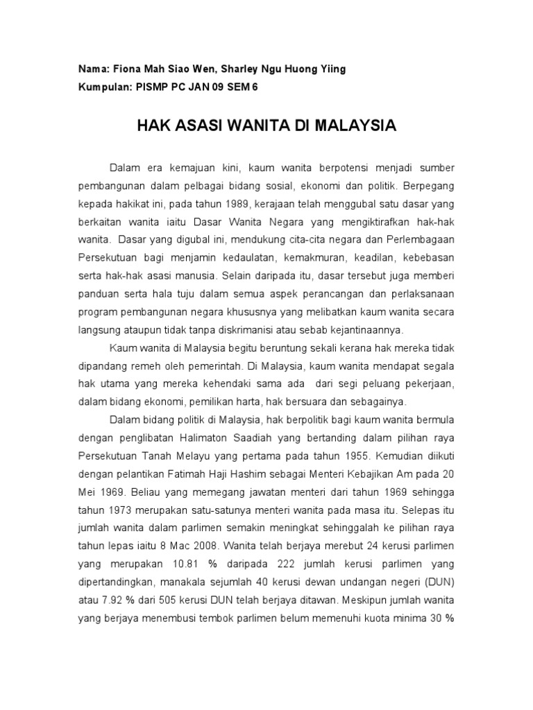 Hak Hak Dan Kebebasan Wanita Di Malaysia