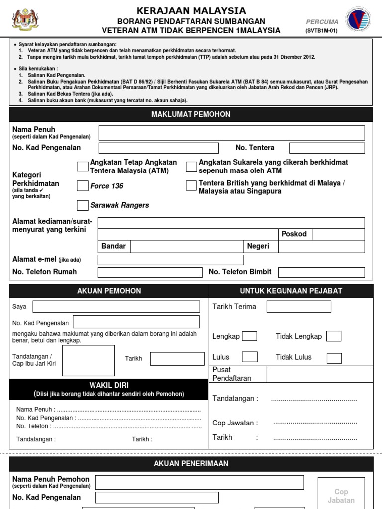 Borang Sumbangan Rm1000 Veteran Tidak Berpencen