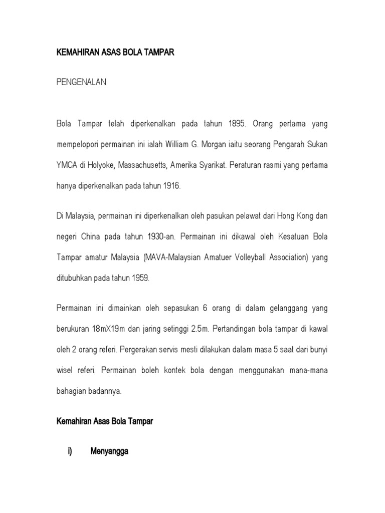 Kemahiran Asas Bola Tampar Pdf
