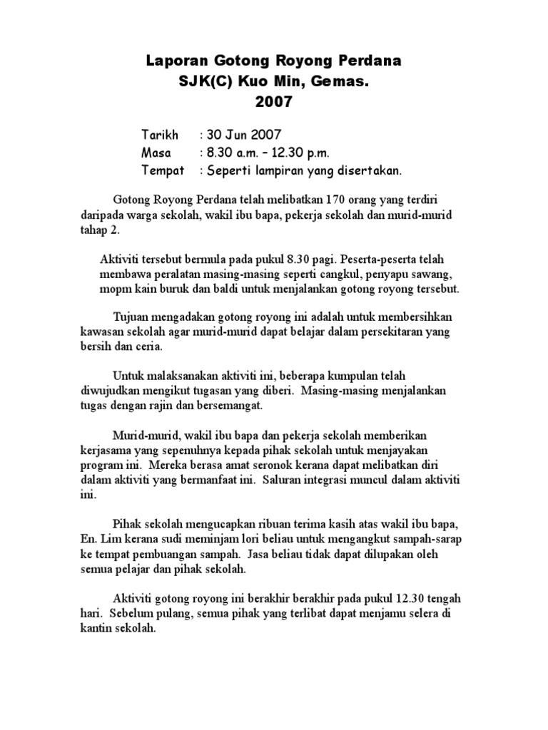 Laporan Gotong Royong Di Sekolah