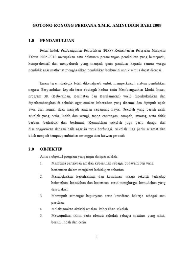 Doc Kertas Kerja Gotong Royong Perdana Sbt Sk Setiawangsa Anjuran Program Ppg Bina Insan Guru Big Fazli Arshad Academia Edu