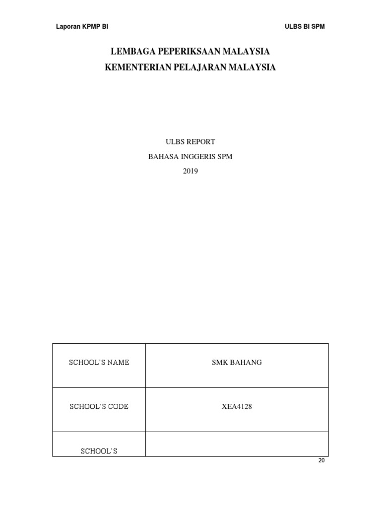 Lembaga Peperiksaan Malaysia Kementerian Pelajaran Malaysia Ulbs Report Bahasa Inggeris Spm 2019