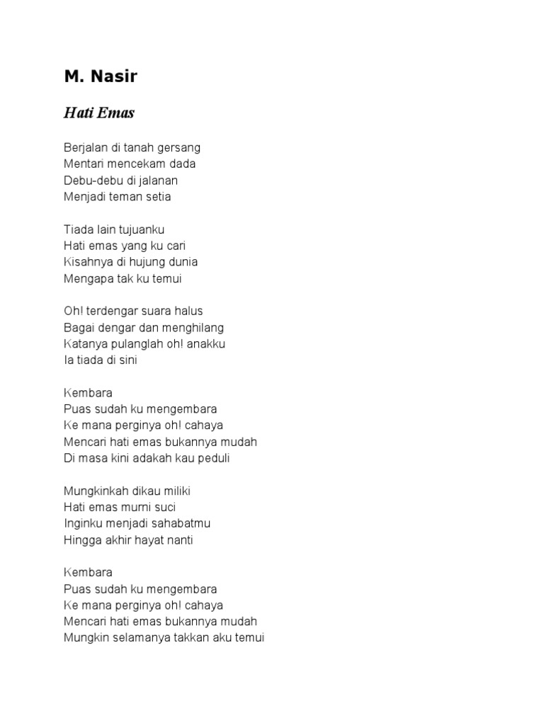 Hati Emas Lirik M Nasir Kembara Youtube