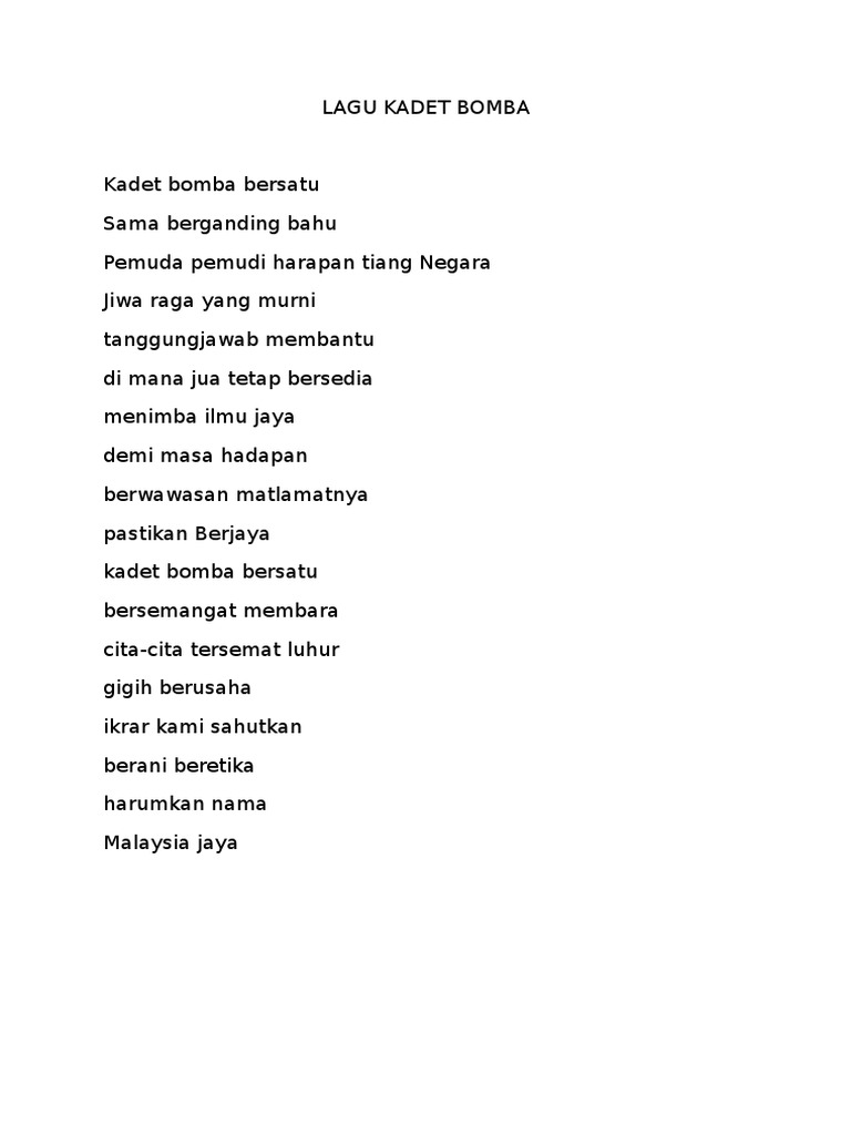 Lirik Lagu Kadet Bomba Dan Penyelamat Docx
