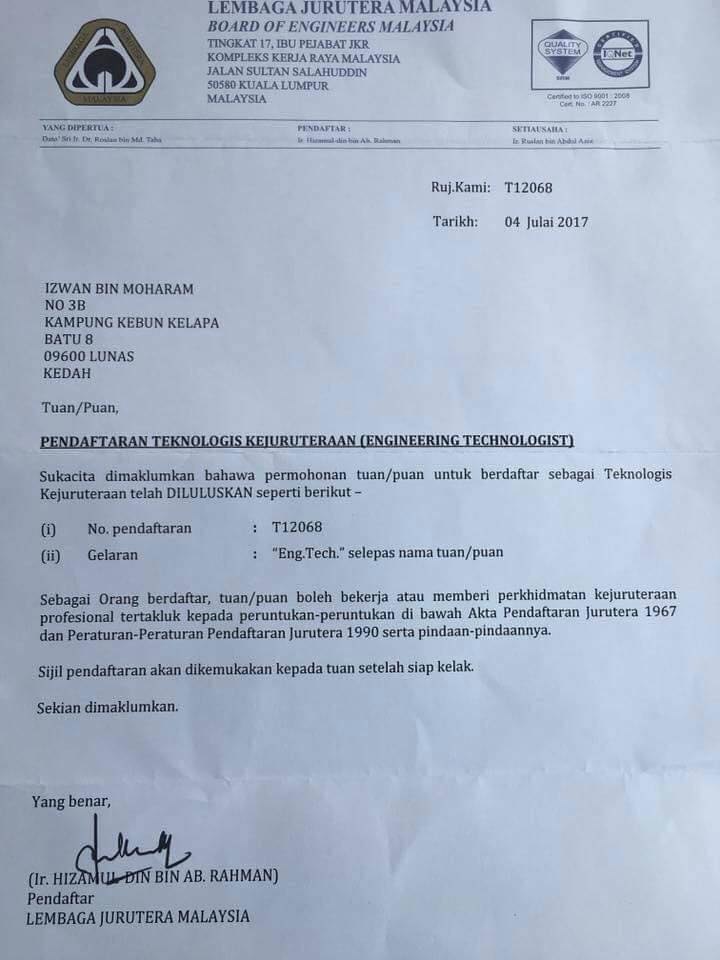 Borang Pendaftaran Jurutera Siswazah Lembaga Jurutera Malaysia Faizal Fredley