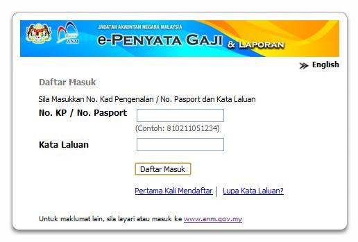 Login Slip Gaji Online E Penyata Gaji Laporan Anm Skoloh