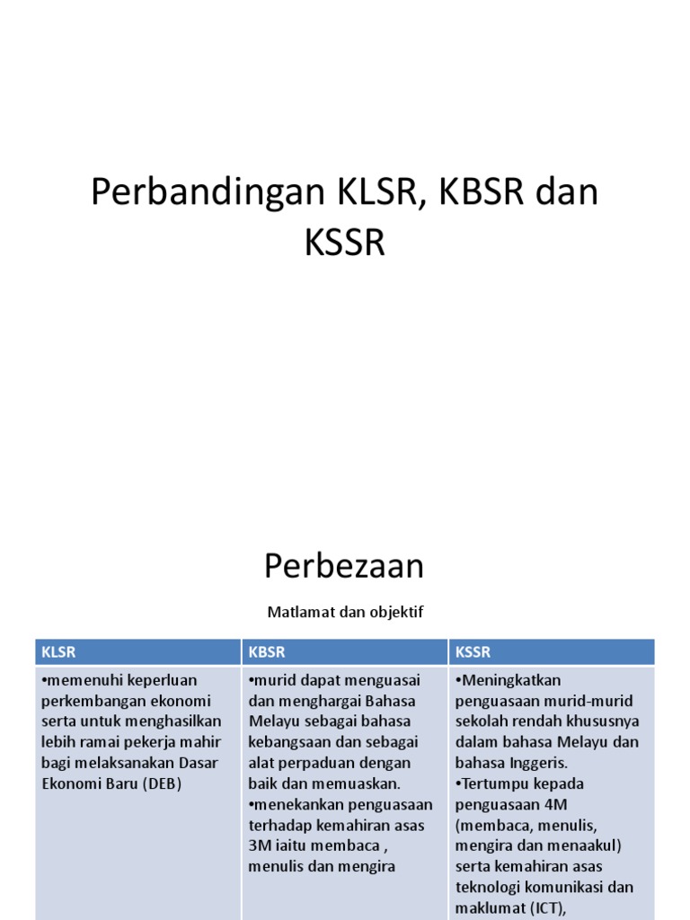 Perbezaan Klsr Kbsr Dan Kssr
