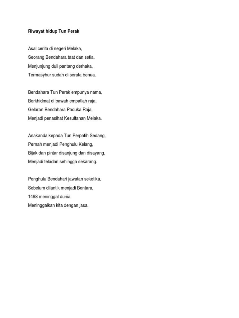 Petikan Sajak Riwayat Hidup Tun Perak