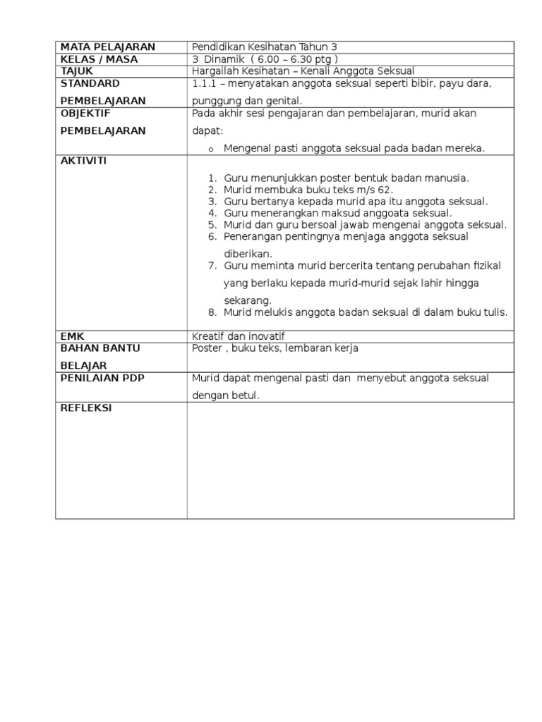Rancangan Pengajaran Harian Pendidikan Kesihatan Tahun 4 Cute766