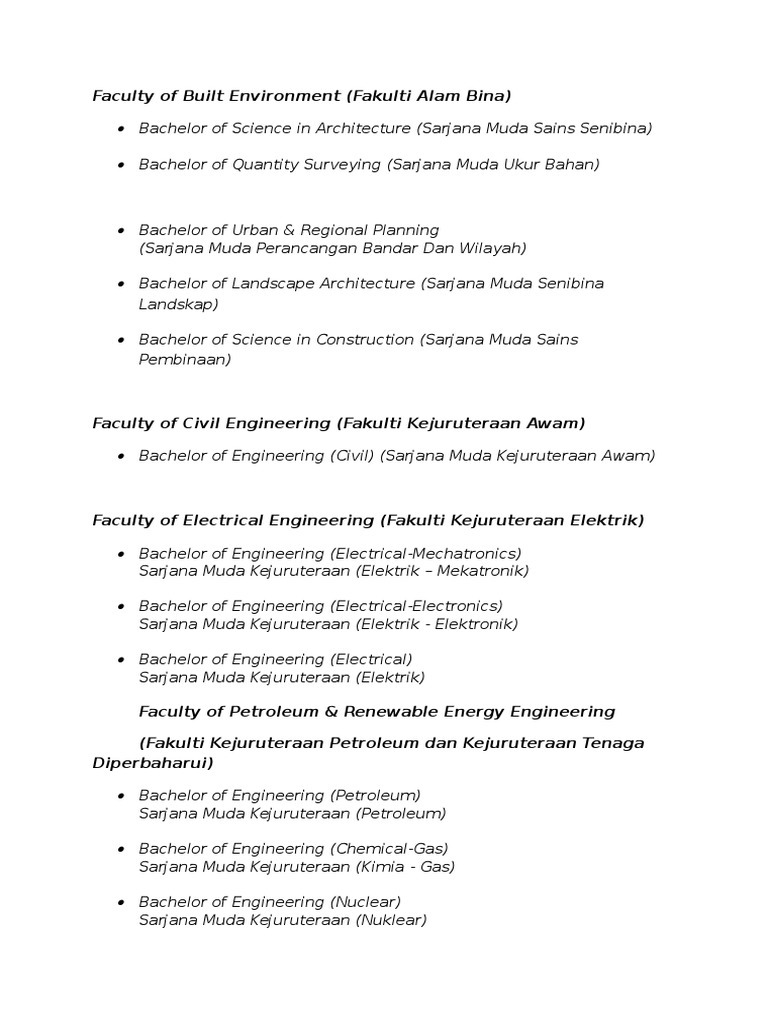 Senarai Program Pengajian Utm Ijazah Sarjana Muda Yang Ditawarkan