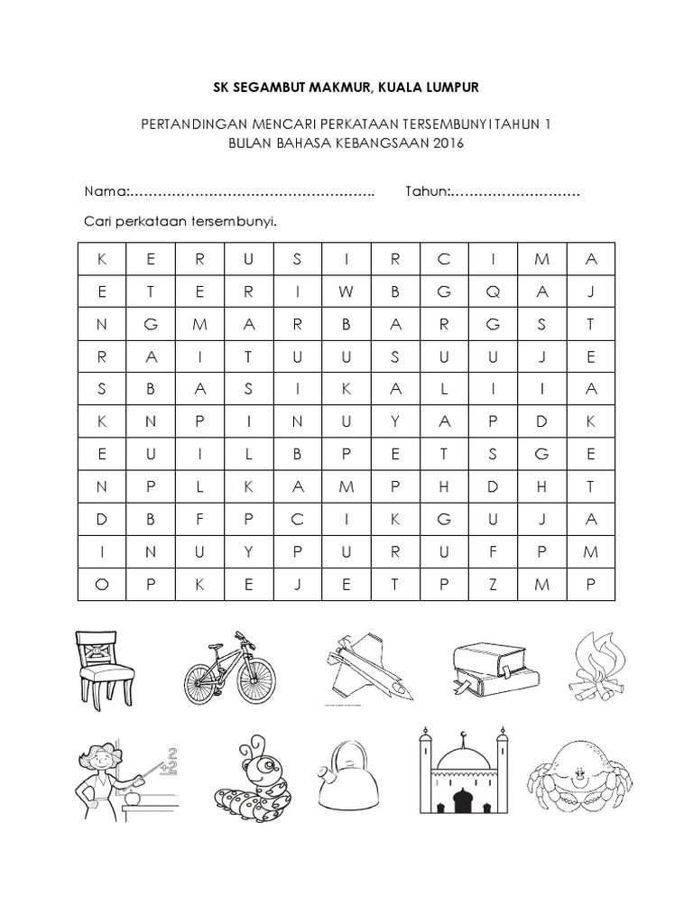 Sekolah Rendah Cari Perkataan Tersembunyi Bahasa Melayu