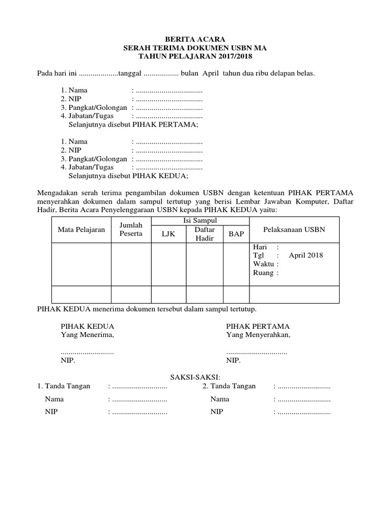 Contoh Berita Acara Serah Terima Dokumen Kumpulan Soal Pelajaran 8