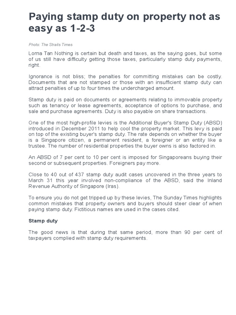Paying Stamp Duty On Property Not As Easy As 1 2 3 Business News Top Stories The Straits Times