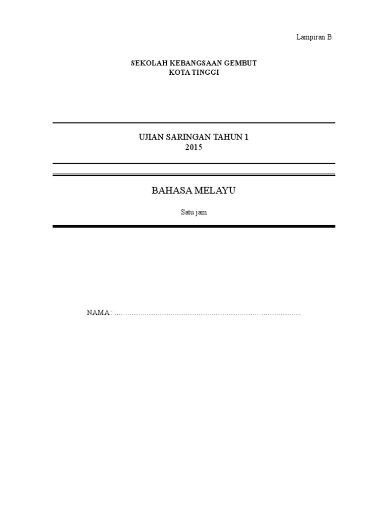 Contoh Soalan Ujian Saringan Darjah 1 Soalan Br